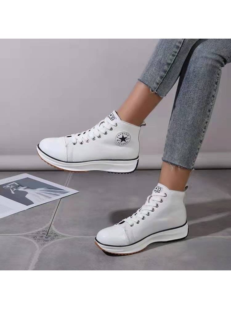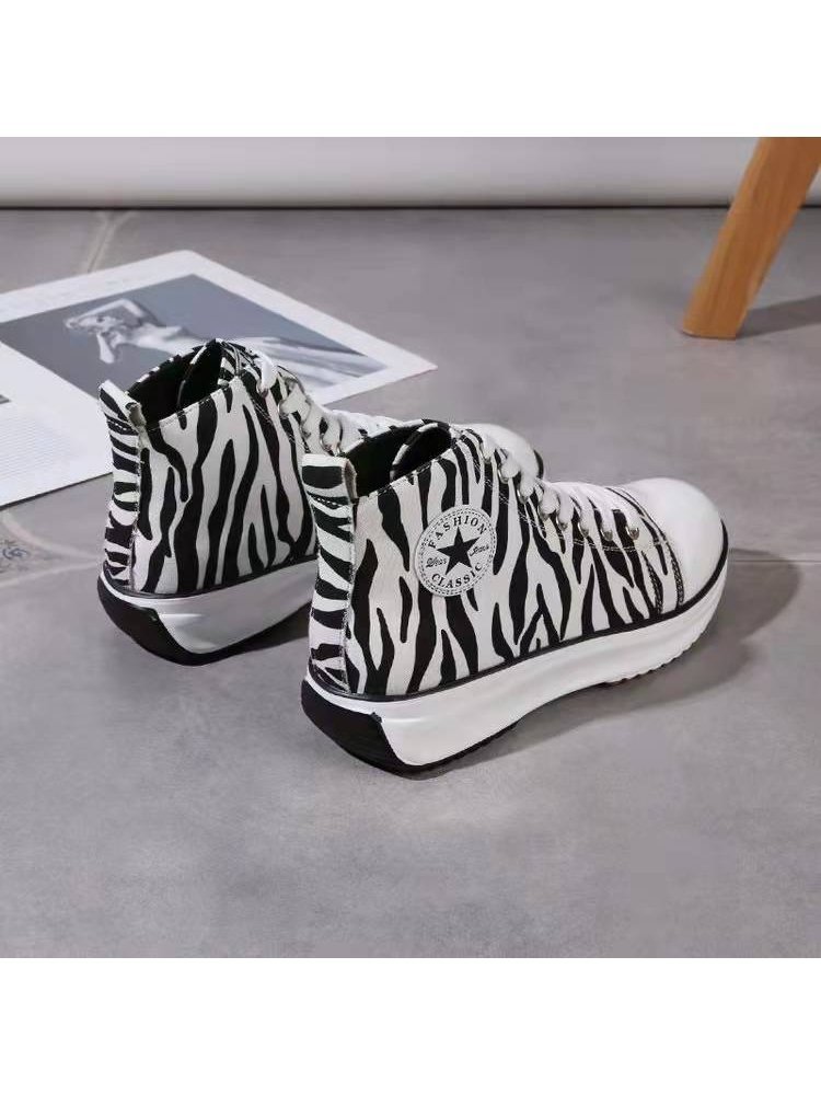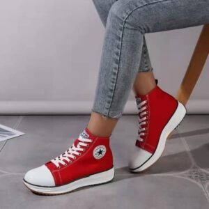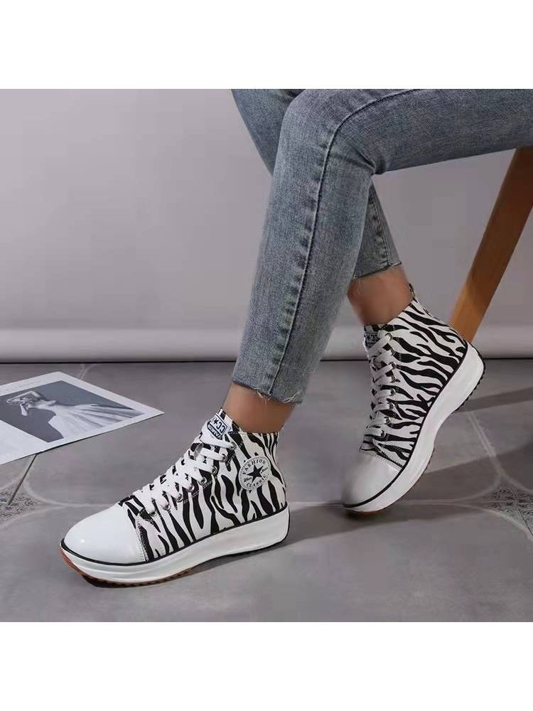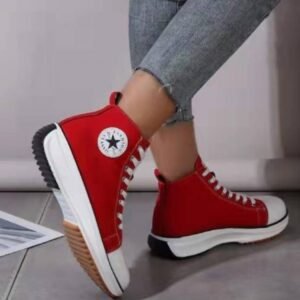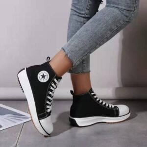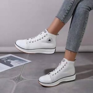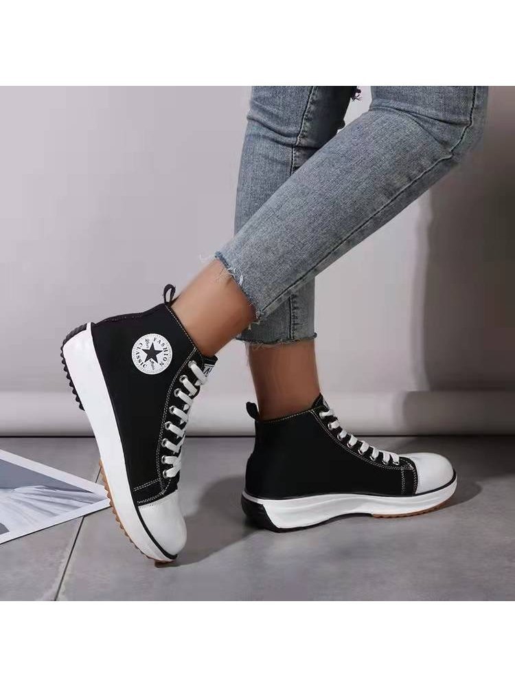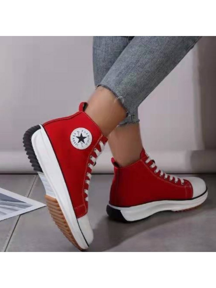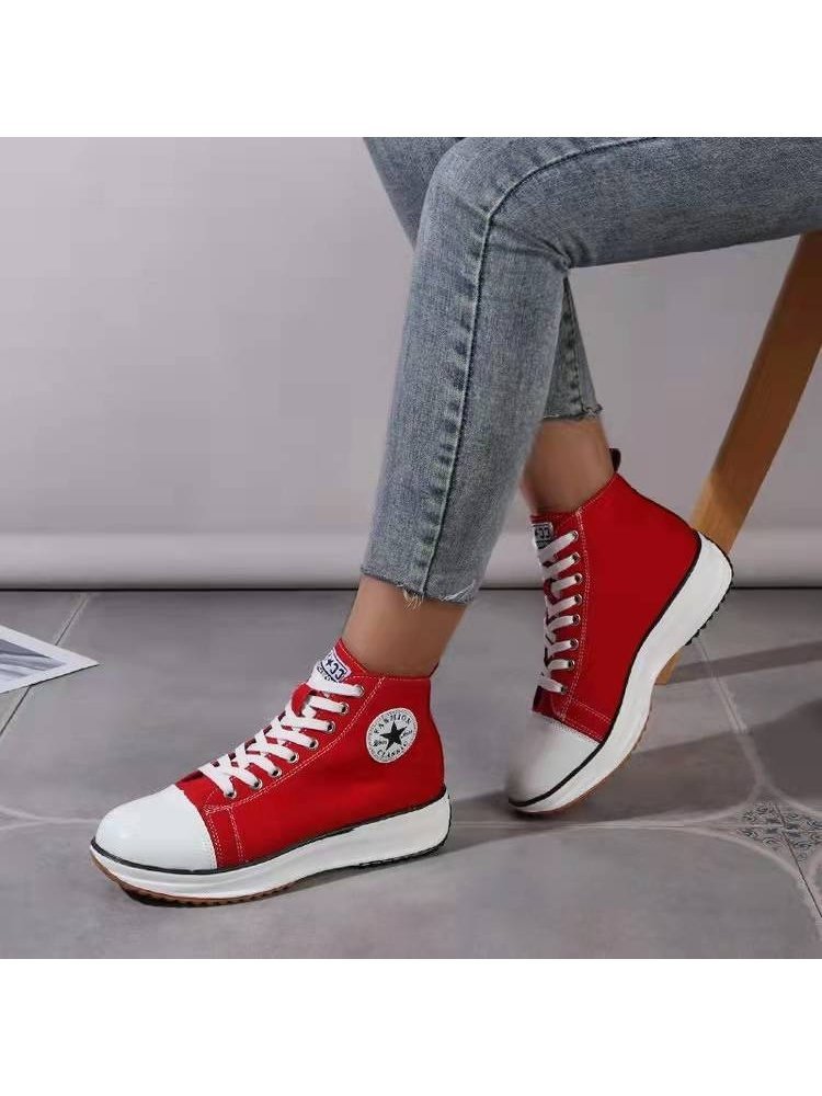 Casual Canvas Lace Up Platform Sneaker Shoes For Ladies
